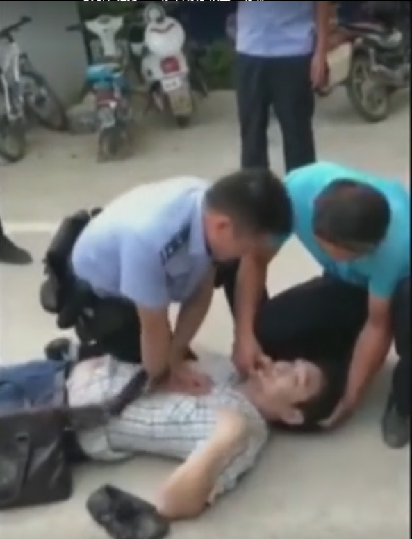 太和县三塔镇李陈村委会村民李某(男,42岁)到三塔派出所办理户口业务时,由于天气炎热,突发疾病休克倒在派出所院内,身体蜷缩在一起,脸色发白,全身发青,嘴角流血,渐渐停止了呼吸。正准备出警的阜阳太和公安局三塔派出所值班民警李鸿志发现情况不对后,立马跑过去对李某进行心肺复苏,并大声喊话鼓励他坚持住。