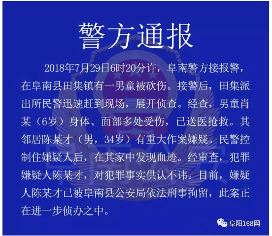 6岁男孩被砍!警方通报出炉!事发阜阳这个地方…